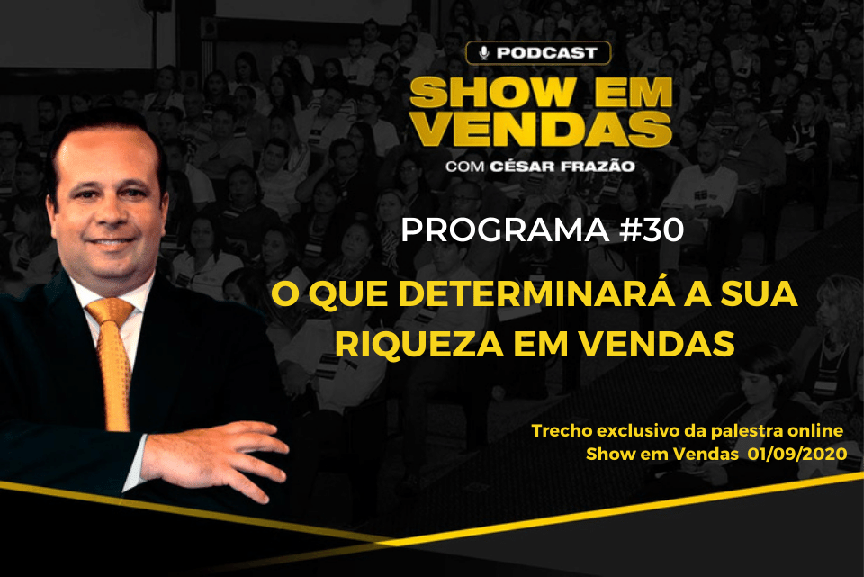 Neste podcast, o palestrante César Frazão explica o que você deve fazer para alcançar sua riqueza, sobre como devemos agir em vendas neste momento em que a crise da pandemia atingiu a todos. Primeiro trecho exclusivo da palestra realizada online em 01/09/2020 pelo canal do Grupo JFV.
